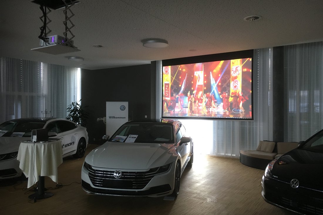 Komponente subtil im Raum integrieren. Die Leinwände, Projektoren und Lautsprecher fanden Platz in der Decke. Ein Knopfdruck genügt, und der Bankettsaal wird zum Konferenzraum.