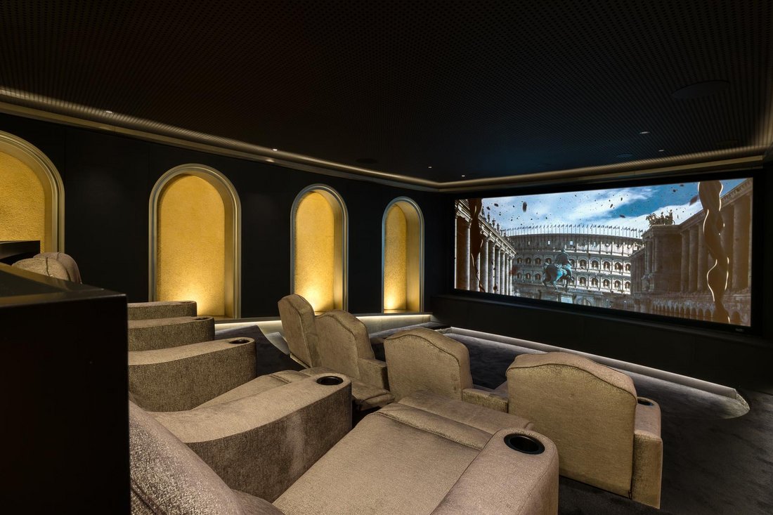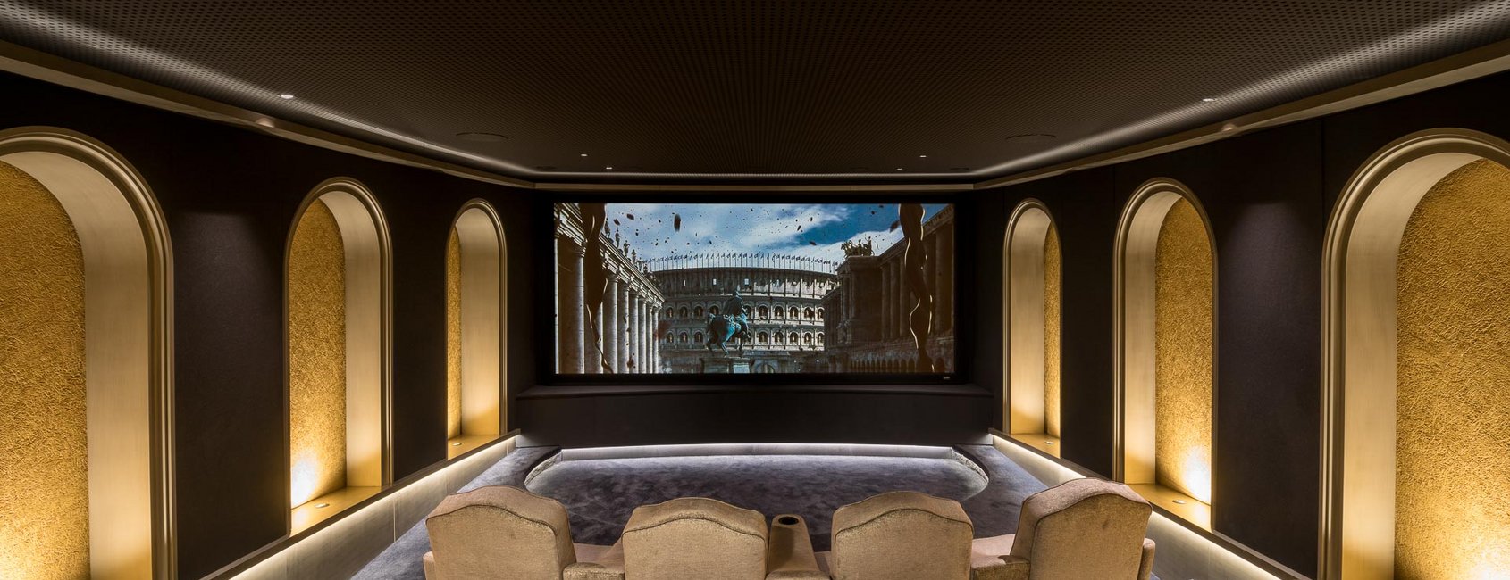 Der Kunde, ein italienischer Cineast, hat SFERS freie Hand für die Planung und Realisierung seines Heimkinos gegeben. Entstanden ist ein Themenkino, das ihm auf den Leib geschneidert ist und in der Anmutung ans Kolosseum von Rom erinnert.
