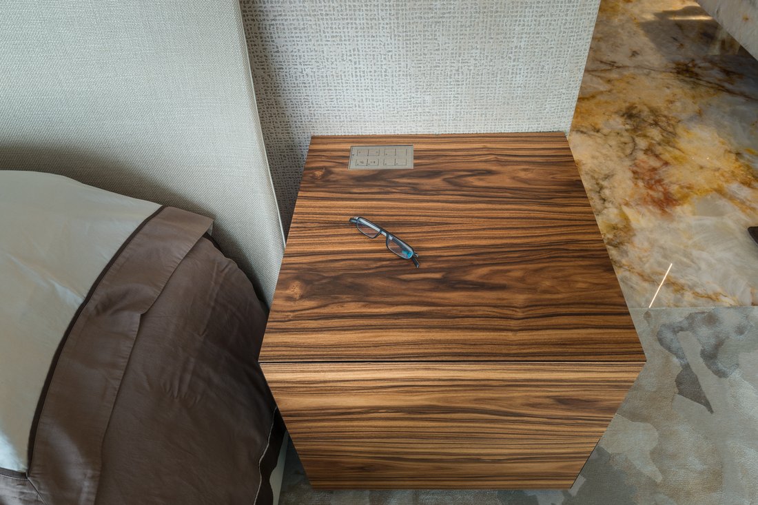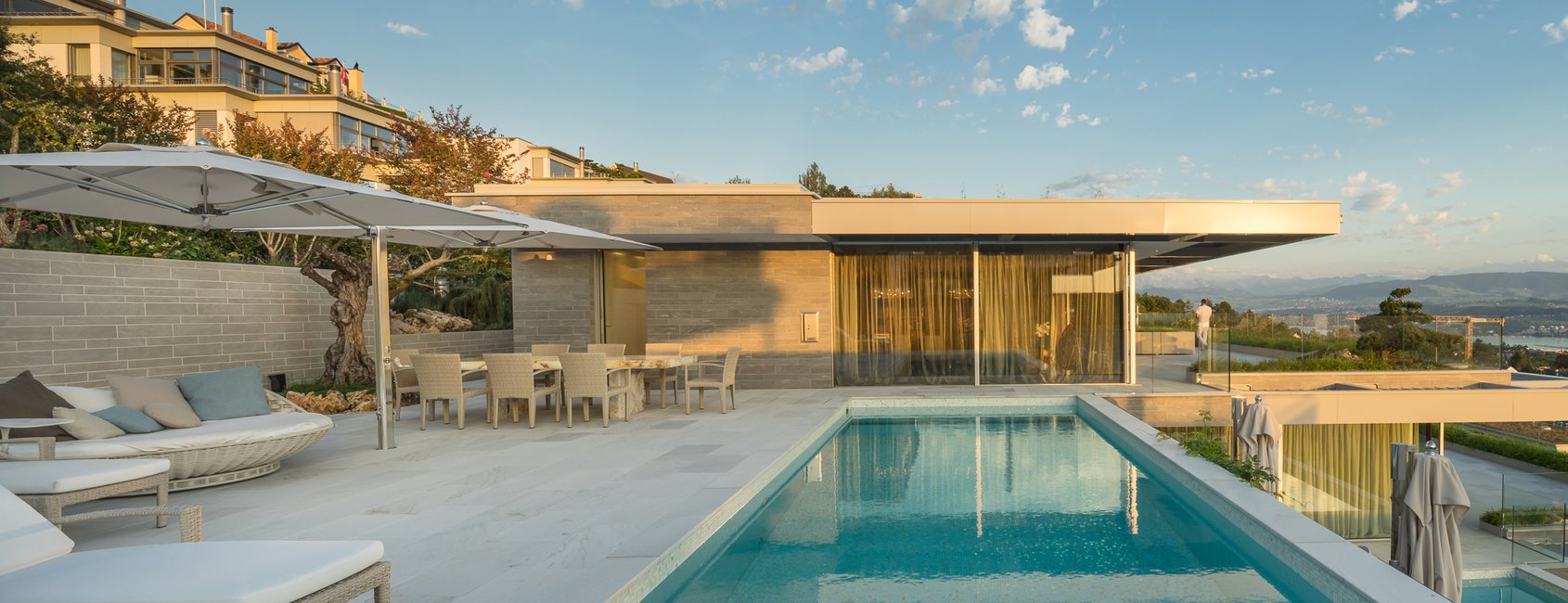 Egal wie viele Lichtgruppen, Storen, Lamellen oder Markisen gesteuert werden sollen: Zu bedienen sind die Anlagen immer kinderleicht – weil immer dieselben Bedienkonzepte angewendet und die Chromstahltaster mit dezenten Symbolen graviert wurden. So ist selbst den Gästen ohne Instruktion klar, was man wie bedient.